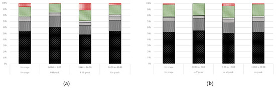 We now analyze the current scenarios for each of the systems used in the Canary Islands. The WtW results for the PEVs are presented in three tables: (i) Table 6 sets out the results for the biggest islands (Tenerife and Gran Canaria); (ii) Table 7 details the midsize systems (Fuerteventura–Lanzarote and La Palma); and, finally, (iii) Table 8 shows the results for the smaller systems (La Gomera and El Hierro). All tables contain the PHEV and BEV consumption (in MJ/100 km) and emissions (in g CO2-eq/MJ) by segment. In addition, the impact of the charging schedule is listed (off, mid or on-peak times) for each path.