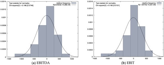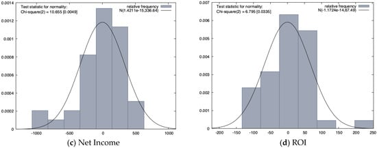 Residuals of (a)-EBITDA, (b)-EBIT, (c)-Net Income, (d)-ROI Distribution Normality Test (Source: constructed by author).