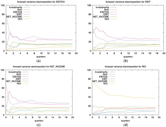 Variance Decomposition of (a)-EBITDA, (b)-EBIT, (c)-Net Income, (d)-ROI (Source: constructed by author).