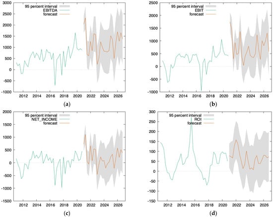 Forecast of (a)-EBITDA, (b)-EBIT, (c)-Net Income, (d)-ROI (Source: constructed by author).