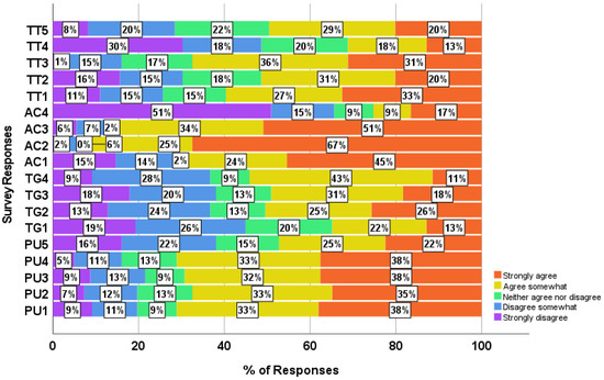 The dimension of the perceived usefulness of IoT sensors (PU) is the extent to which respondents believe that IoT devices can help in making the city better suited for people with disabilities and in making the city function better [38,75,76,77].