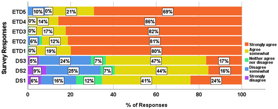 A five-point Likert scale was used to evaluate each statement, as follows: 1—strongly disagree, 2—disagree somewhat, 3—neither agree nor disagree, 4—agree somewhat and 5—strongly agree. The demographic results of the survey sample are shown in Table 1.