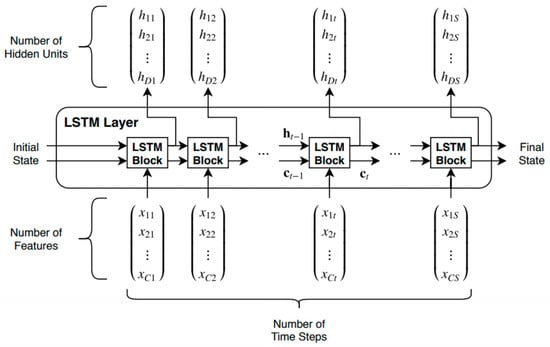 Data flow chart in the processing and representation time series X with C feature channels of length S in an LSTM network.