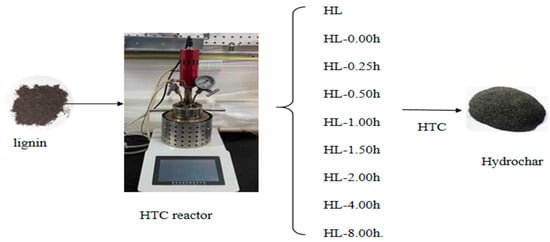 20]. On one basis, this paper discusses the influence of different holding time on aromaticity and calorific value, as well as the changes of physicochemical properties and aromatization mechanism of hydrochar, so as to provide theoretical basis for the research and development of efficient carbon aromatization system. This novel point is to explore the influence of the change of holding time on the aromatic degree and calorific value of hydrochar. The evolution process of chemical structure and physical form of hydrochar is discussed through ultra-fine time grouping, which provides mechanism research and theoretical support for realizing high-energy utilization of lignin. At the same time, the influence of hydrothermal carbonization reaction conditions on the chemical structure of hydrochar is a recent research hotspot. In this paper, by adjusting the holding time, the aromatization process of lignin during hydrothermal carbonization and the change rule of the aromatization degree of the product-hydrochar are studied by adjusting the holding time, and the change of the physicochemical properties and aromatization mechanism of hydrochar with the holding time were deeply explored, aiming to improve the theoretical support for the research and development of efficient utilization technology of lignin.