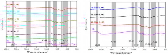 26]. The infrared map of lignin and hydrochar with different insulation times was obtained by FTIR in