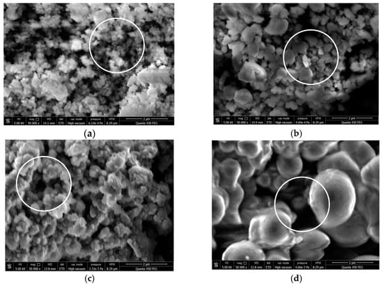Figure 4a, small microspheres were initially formed on the surface of the hydrochar with uneven distribution, and pore structures were clearly visible on the surface. When the holding time is 1.00 h, as shown in