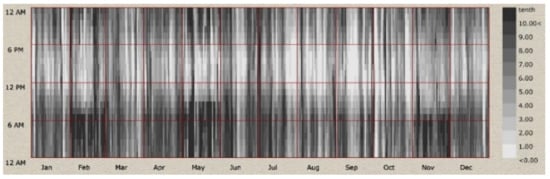 The daylight availability metric of UDI divided hourly time into three main categories of failing for illuminance of 0–100(Lux); useful oracceptable for illuminance of 100–2000(Lux), which (100–300(Lux): supplementary may need additional artificial lighting; 300–3000[Lux]: autonomous), and excessive, for illuminance of greater than 3000(Lux), respectively [,]. In this study, the “useful” range was considered in the optimization.