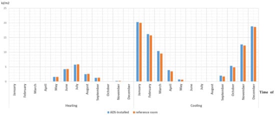 The application of the ADS in the southern hemisphere improves daylighting performance significantly without any influence on the air temperature [], since in tropical and subtropical regions, the highest sky luminances are usually within the sky zenithal area []. Sydney, NSW, is located in latitudes where natural luminous conditions throughout the year are of high solar radiation. Because of the dominant contribution of the cooling load to energy usage in the Sydney climate, which receives high-intensity solar radiation, studying the effect of the ADS on space cooling is essential.