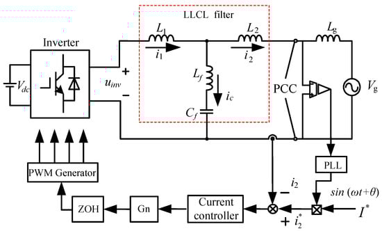 Under the target of “double carbon”, distributed generation system based on renewable energy such as wind, hydropower, and solar energy is an efficient way to relieve energy shortage and resolve environmental pollution problems [1,2,3]. Under above background, the grid-tied inverters (GTI) have been widely used [4]. It is widely believed that L filters or LCL filters are normally applied to suppress the high-frequency switching harmonics generated by GTI.