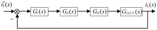 The LLCL GTI and its topology are shown in Figure 1. Where the inductor and capacitor form a series resonant branch; is the equivalent grid impedance; the inductor on the inverter side and the inductor on the grid side are and respectively. The control system uses a phase-locked loop to obtain the grid-tied current instruction synchronized with the grid voltage . In the control algorithm module, PIMR repetitive controller is used, the transfer function of it is