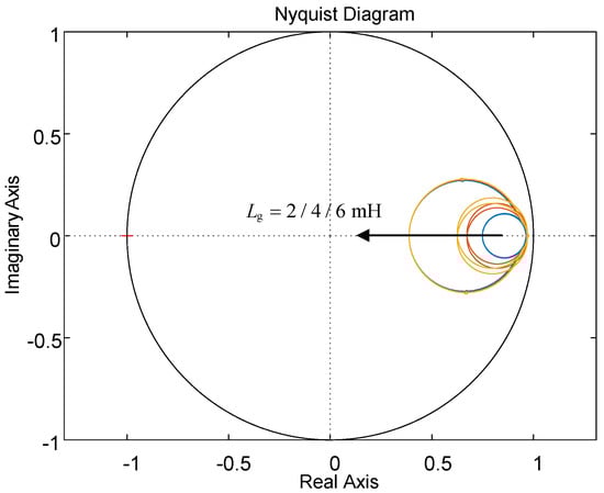 Therefore, could be used as the stability criterion of the whole system. When 2 mH, 4 mH, and 6 mH, the trajectory of is plotted in Figure 10, it is easy to see that the trajectories are all in the unit circle. Therefore, the proposed control scheme is robust to the variety of power grid impedance.