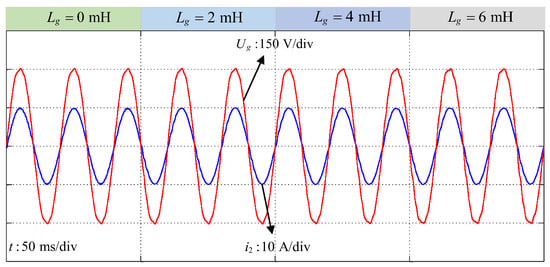 According to different grid impedances, the impedance values are switched every 50 ms to obtain the grid voltage and current waveforms as shown in Figure 18. By switching between different , it could be known that grid voltage and current waveforms are smooth and basically unchanged even at the moment of switching, it could be confirmed that even in the weak power grids, the system can also show excellent performance and have strong robustness.