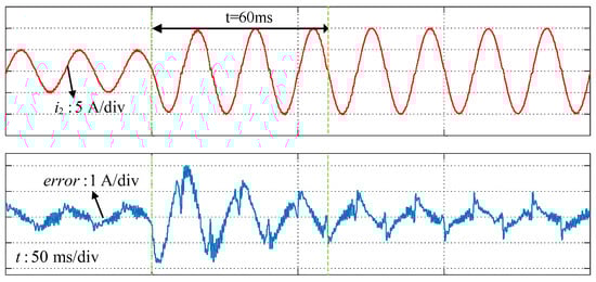 Grid-tied current waveform before and after control switch with = 6 mH.