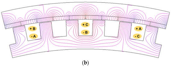 - Kim, B.; Lipo, T.A. Analysis of a PM Vernier Motor with Spoke Structure. IEEE Trans. Ind. Appl. 2016, 52, 217–225. [Google Scholar] [CrossRef]