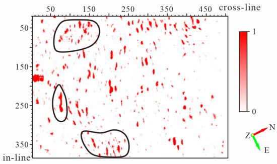 The network prediction results synthesize the fracture characteristics represented by the four attributes and show certain performance for the fractures in the middle and surrounding areas of the work area, reducing the multiplicity of solutions.