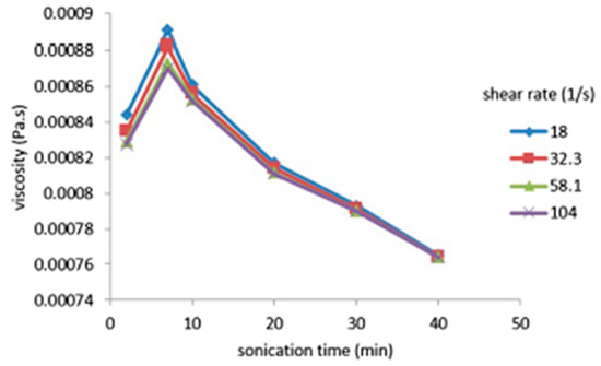 - Adio, S.A.; Sharifpur, M.; Meyer, J.P. Influence of ultrasonication energy on the dispersion consistency of Al2O3–glycerol nanofluid based on viscosity data, and model development for the required ultrasonication energy density. J. Exp. Nanosci. 2016, 11, 630–649. [Google Scholar] [CrossRef]