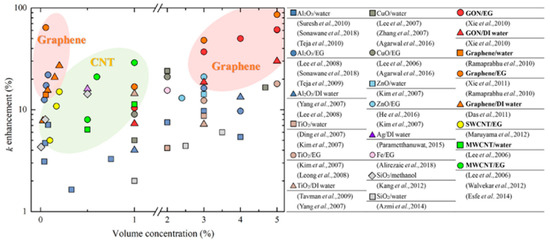 - Kakavandi, A.; Akbari, M. Experimental investigation of thermal conductivity of nanofluids containing of hybrid nanoparticles suspended in binary base fluids and propose a new correlation. Int. J. Heat Mass Transf. 2018, 124, 742–751. [Google Scholar] [CrossRef]