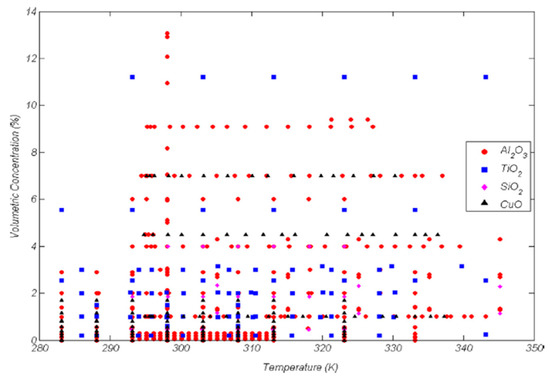| 2016 | CuO/GL, SiOx/EG-DIW (60:40), SiO2/DIW, and MgO/GL | 1–6 vol % | Property | - | 1–2 h | NU | @ 150 W and 40 kHz | Sharifpur et al. [7] | - |