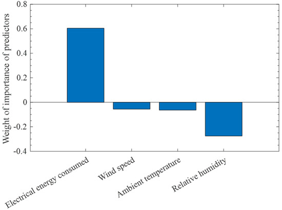 A mathematical model is a mathematical equation or computational program that describes the dynamic behavior of a physical system or process [63,64]. A mathematical model is beneficial in control systems applications, optimization of physical systems or processes, and prediction during the “what if scenarios” of a system or process. A mathematical model can be presented by three components: namely, the input(s), mathematical equation(s), and output(s) [65]. The mathematical model used in the study is multiple linear regression derived by the least square regression method [65]. The multiple linear regression model is used to predict the energy factor of the designed and monitored DX-SAHP water heater connected in parallel configuration and installed in a students’ residence at a university campus. The input parameters for the multiple linear regression model include ambient weather factors, thermodynamics, and electrical factors of the hybrid SAHP water heater.