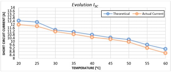 Plot representation of the temperature influence to the ISC characteristics of the PV generator.