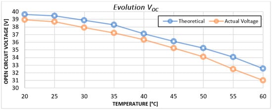 Plot representation of the temperature influence to the VOC characteristics of the PV generator.