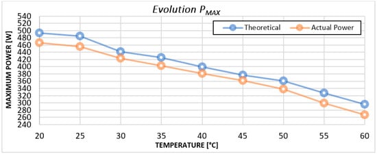 Plot representation of the temperature influence to the PMAX characteristics of the PV generator.