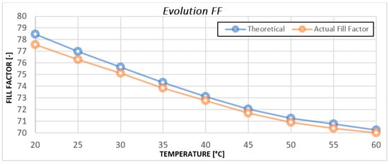 Plot representation of the temperature influence to the FF characteristics of the PV generator.