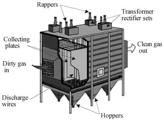 Electrostatic precipitators (ESPs) consume about 1% of the energy produced by a thermal power station. They are designed as sections connected in series, each with its own high-voltage source. Dry plate-type ESPs are used for dust removal in power plants, paper mills, cement plants, the steel industry and the chemical industry, and have two major functions (depending on the industry): reducing ambient air pollution and collecting dust particles for reuse [4,5,6,7].