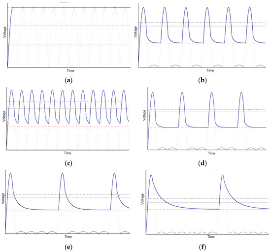 Several simulations were made. Most of the simulations took into account the nature of the high voltage applied to the sections (ideal voltage, half-wave voltage, full-wave voltage, intermittent voltage of third, fifth and seventh order—Figure 4) [8,14].