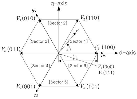 - Hari, V.; Narayanan, G. Space-Vector-Based Hybrid PWM Technique to Reduce Peak-to-Peak Torque Ripple in Induction Motor Drives. IEEE Trans. Ind. Appl. 2016, 52, 1489–1499. [Google Scholar]