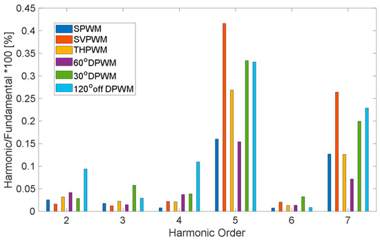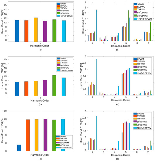 - Piazza, M.; Pucci, M.; Vitale, G. Benchmarking of PWM Techniques Effects on Efficiency, Power Quality and EMI in DC-supplied Induction Motor Drives. In Proceedings of the 2013 IEEE Energy Conversion Congress and Exposition, Denver, CO, USA, 15–19 September 2013. [Google Scholar]