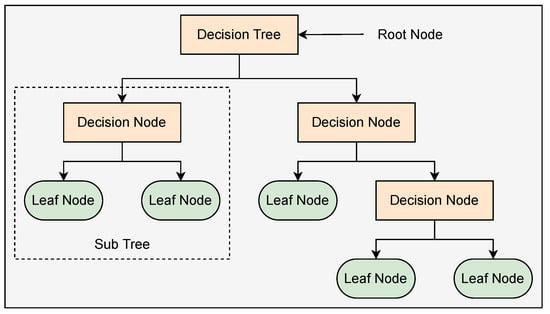 To implement the Decision Tree (DT) algorithm, a tree-like structure was formed. Each node of the tree was assigned a condition. As per the conditional requirement, the decisions were progressed and arrived at an optimized decision. Various parameters determine the operation of the tree. A tree is composed of nodes, which are further connected by edges. The root node exists at the top of a decision tree, and this node is the origin of decision-making where conditional operation starts. The node where decision-making is performed is called the decision node and it is obtained after separating the root nodes. The node where further splitting is not possible is called the leaf node. Branches represent the flow from question to answer. The number of children at each node is determined by the branching factor. If this value varies, an average branching factor is used for computational purposes. The level of the tree is determined by the total number of parent nodes at that node. A sub tree is formed by a section of the tree. The subgraph is a component of the main graph. Pruning is performed to prevent overfitting; this is done by removing certain nodes. Overfitting can give false and deceptive output. Decision Trees can be used in both classifiers and regression.