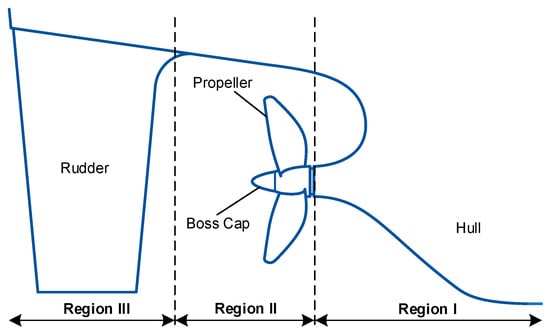 Among the different energy saving measures, this paper focuses on aftship energy saving devices which demand little investment. These devices can be implemented at different regions, depending on their purposes. As shown in Figure 1, they can be implemented upstream of the propeller (Region I), to accommodate a more favorable wake to the propeller or to reduce drag. They can also be implemented in the propeller region (Region II), or in the rudder region (Region III), in both of which the devices are usually used either to lower the torque on the propeller shaft or to increase the thrust from the propeller blades.