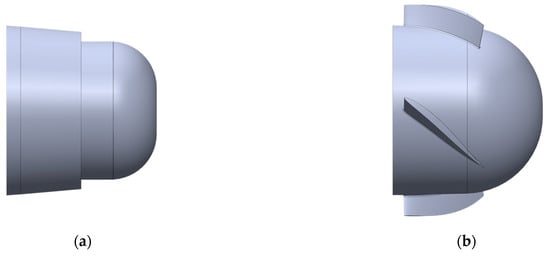 The original boss cap vs. the new boss cap with optimized fins. (a) Original boss cap. (b) New boss cap, with optimized PBCFs.