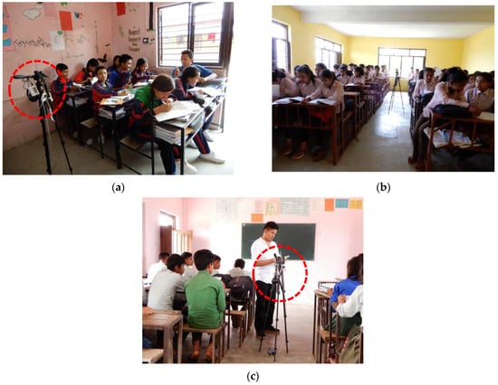 In addition, the thermal responses were determined based on thermal measurements. A total of 246 students, 40% male (n = 101) and 60% female (n = 145) of the age group 12–18 years, participated in the survey. The average height and weight were 1.5 m (male: 1.54 m and female: 1.48 m) and 42.6 kg (male: 43.5 kg and female: 42 kg), respectively. Altogether, seven classrooms were visited in three school buildings during the study. Students from Grade 9 and 10 participated in the case study building (S1), with 19 and 14 students accommodated, respectively. A seven-point thermal sensation scale and five-point preference scale with Nepali language translation was used for ease of response. The Nepali translation was previously validated in a study [] and has been used widely in other studies conducted in Nepal [,,,]. We asked the students about their thermal sensations and preferences, as shown in Table 4. The students voted three times, as shown in Figure 4, and 737 responses were collected per question. Voting occurred in a sedentary condition without disrupting the normal lesson.