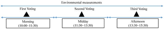 The procedure of thermal comfort survey and environmental measurements. The voting time environmental quantities were also noted from the continuous measurement.