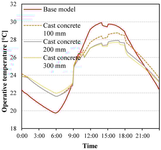 As discussed in the previous sections, students experienced thermal discomfort at high temperatures. Therefore, the following sections analyse how to reduce such discomfort by reducing high temperatures through use of passive design strategies, using the simulation results for zone 3 in the S1 school building in Kathmandu. The strategies such as natural ventilation, thermal insulation, and thermal mass, can be used as retrofit in practical situations or before construction. Individually, each strategy was investigated separately while keeping the other components unchanged. Subsequently, their impacts on the operative temperature were analysed to identify the optimum case for each strategy. The strategies were applied at the whole-building level, but we only analysed the simulated classroom (zone 3). We selected affordable passive refurbishment expanded polystyrene (EPS), glass wool (GW) as an insulating material, and cast concrete as a thermal mass for improvement, considering that they are found at the local level in the study area. The simulation was run at 10 min intervals.