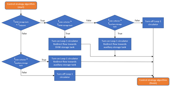 Throughout the day, a DHW consumption profile was set. This, along with heat losses, resulted in both tanks getting colder over time. Thus, the solar collector controlling strategy ensures that DHW storage tank temperature levels [32] would be satisfied as much as possible.