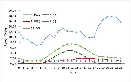 In this work, the generations CG, PV, and WPG followed the curves presented in the respective case studies.