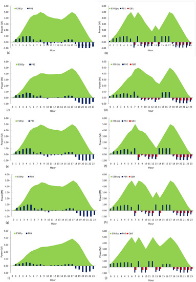 In [29], an operation strategy is developed in AC microgrids. The goal consists of minimizing the power variations imposed by diesel generators coordinated with PV generation. A real-life application regarding the optimal operation of BESSs in AC microgrids is presented in [30]. In this case, storage systems are used to minimize the effects of power cuts; therefore, BESSs supply energy to the loads during electricity cuts.