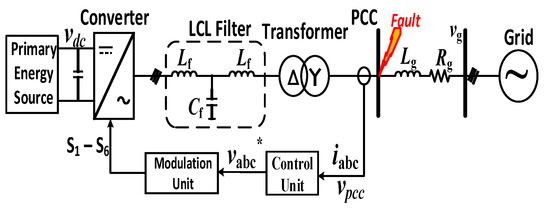 - Pal, S.; Mishra, M.; Verma, A.; Kasari, P.R.; Das, B.; Chakraborti, A. Control of Grid Connected Converters Under Unbalanced Grid Faults. In Proceedings of the 2018 IEEE International Conference on Power Electronics, Drives and Energy Systems (PEDES), Chennai, India, 18–21 December 2018; pp. 1–6. [Google Scholar]