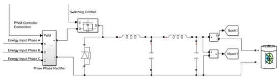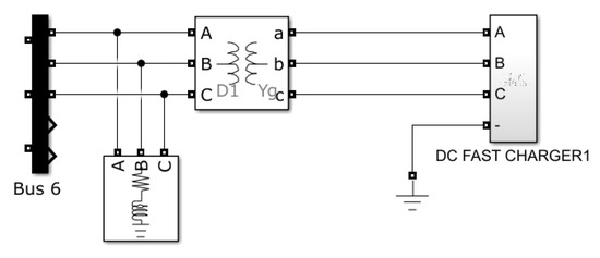 A vehicle charging station that will draw electrical energy from the power test systems used in the study was modeled using MATLAB Simulink and shown in Figure 1.