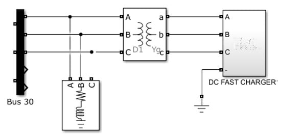 In the IEEE 6-bus test system, first seen in Figure 2, a DC fast charger is connected to the 6th bus through a transformer.