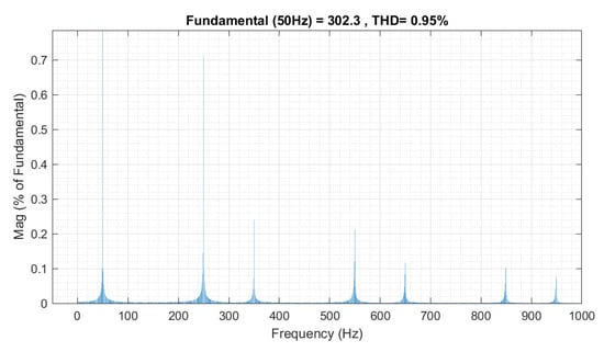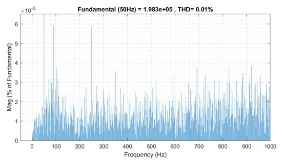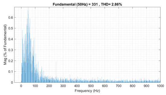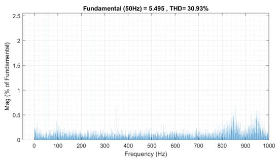 THD values were calculated for the current voltage signals in Figure 5, Figure 6 and Figure 7 and the results are shown in Figure 8, Figure 9, Figure 10 and Figure 11.
