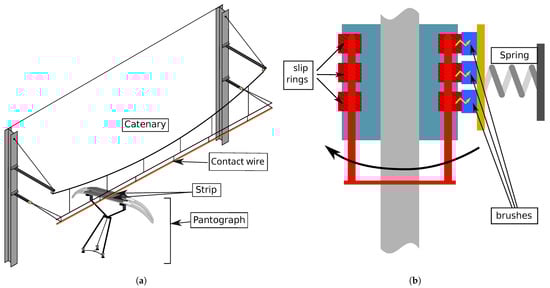 (a) Schematic of a pantograph–catenary system [1]. (b) Schematic of a slip ring.