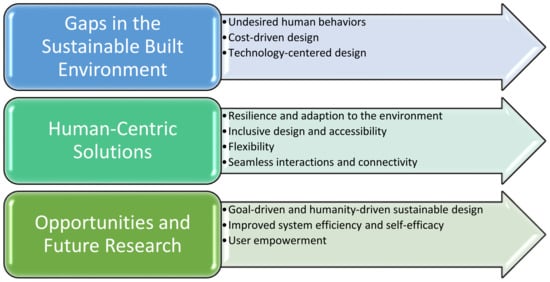 Figure 2. A conceptual framework of human-centric solutions to address gaps and boost opportunities for future research in the sustainable built environment.