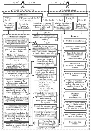To solve the resource and energy saving control problem of the steelmaking converter process, taking into account waste recycling, a functional structure of a computer system is proposed [55], and is presented in Figure 3.
