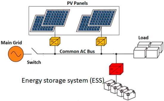 In recent years, studies on microgrids (MGs) have focused on improving energy management systems (EMS) in diverse environments. The term microgrid refers to the decentralised group of renewable-energy-based electricity sources, energy storage system (ESS), and variable load [1]. A microgrid can operate in either the standalone or grid-connected mode exchanging power with the main grid. An effective EMS can achieve different goals, such as optimisation of operating cost, better utilisation of RES, demand-side management, reduction in the use of polluting-fossil-fuel-based power sources, or balancing energy demand [2]. Most of the efforts are intended to reduce the operating cost of the microgrid through the EMS controlling the ESS. However, this is challenging due to various unknown factors, which may change over time, such as RES production, load demand, and utility prices, which are strongly influenced by the weather conditions [3]. There is a lack of resolution for the nonlinearity and complexity of energy forecasts, including modelling growth and computational load, particularly when combining multilevel parameters’ uncertainty [4]. In order to promote energy efficiency, precise energy forecasts based on simple models using machine learning schemes are promising. Moreover, high-level controllers with short-term building energy forecasts under high-level scenario uncertainties should be studied more deeply. Different methods have been used to manage ESS in microgrids, including linear programming (LP), nonlinear programming (NLP), dynamic programming (DP), mixed integer linear programming (MILP), genetic algorithms (GA), and mixed integer nonlinear programming (MINLP). These approaches require a good forecasting system to build a model to achieve decent optimisation results. These approaches have the their own pros and cons. Linear programming (LP) is the best method of utilising productive resources because it gives feasible and practical solutions and improves decision making [5]. Nonlinear programming simplifies complex problems, but it is computationally expensive [6]. Dynamic programming reduces a complex problem into smaller parts, which can be solved more easily. However, this suffers from the curse of dimensionality when the system has many state variables [7]. Mixed integer linear programming offers a flexible set of subfunctions and intelligent convergence behaviour. However, to facilitate self-adoption, choosing the appropriate parameters is an essential step, especially under conditions of uncertainty due to weather or fluctuations in real-time load demand [8].