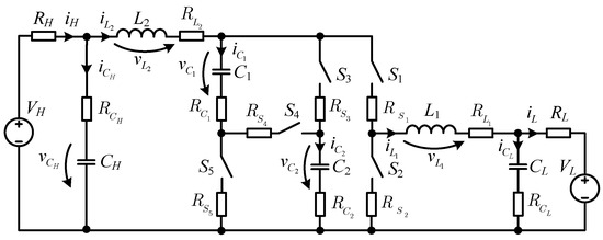 - The power switching devices S1–S5 are ideal switches in series with parasitic resistances rS1 = … = rS5 = rS;