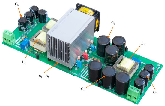 A BHSC prototype, as shown in Figure 23, was built based on the information presented in the previous sections. The sizing of the converter’s passive components was performed according to the methodology presented in Section 3. The prototype parameters are listed in Table 2, Section 5, and Table 4.